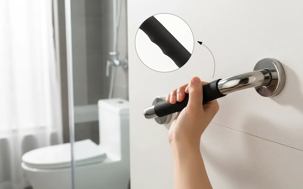 My dad uses this grab bar near the toilet every day. The grip stays strong even when everything is wet. Such peace of mind!