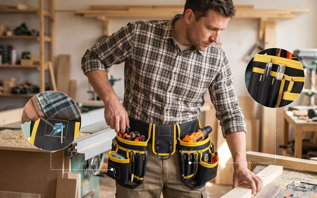 Reinforced seams handle heavy hammers, drills, and bulky hardware easily. Tough fabric shrugs off site dust, serving builders, electricians, plumbers through countless projects.