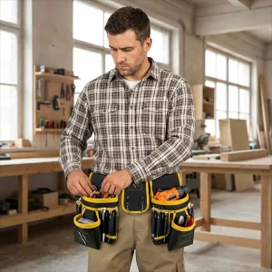 I help my husband with roofing jobs and wear this myself. It stays put while walking steep pitches, and the pouch layout keeps everything balanced.
