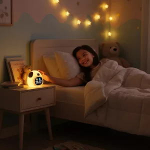 The light colors help my twins know when it’s time to sleep or get up. Our bedtime fights dropped a lot after bringing this clock home.