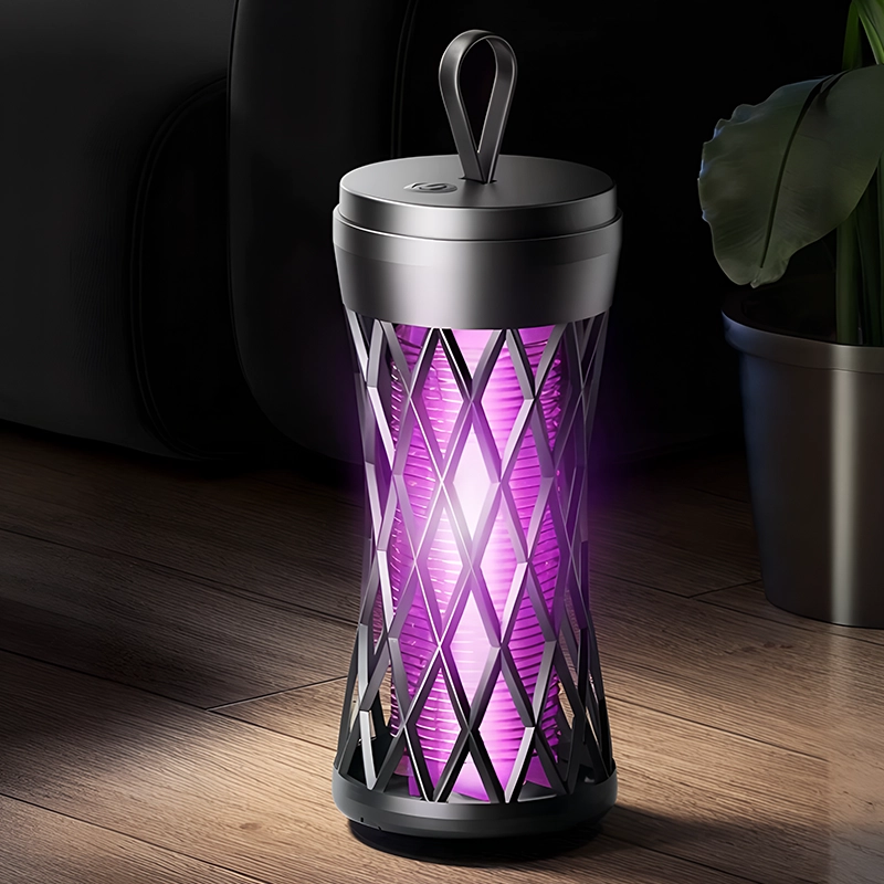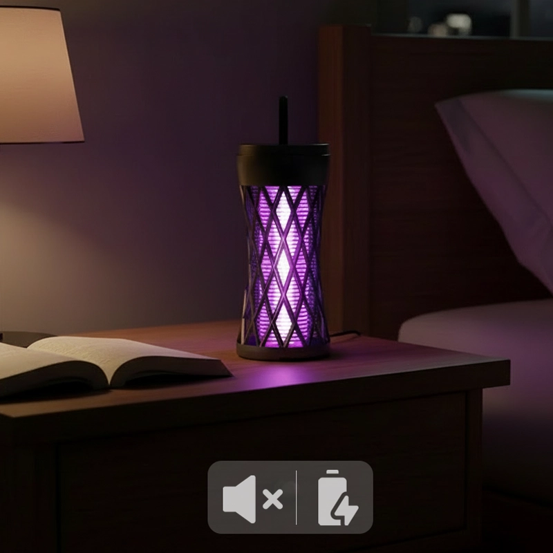 My husband and I use this lamp in our small apartment bedroom, and the quiet hum and dark light keep everything calm and bug‑free.