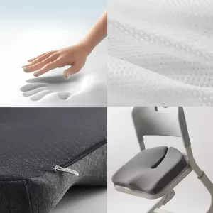 Super soft cushion that supports me so well. My lower body doesn’t get sore, even during meetings that last all morning. Keeps me upright with no effort.