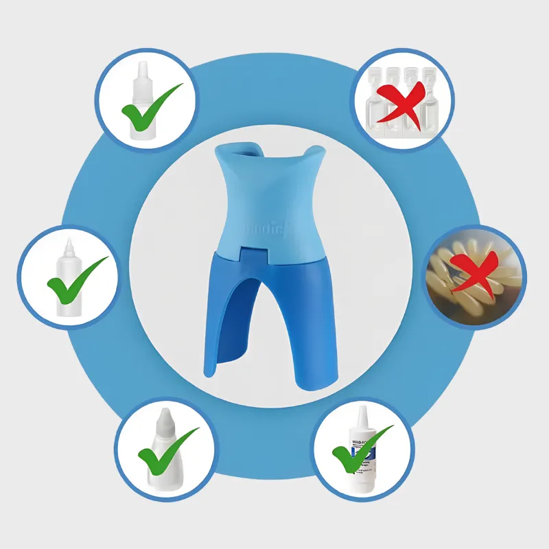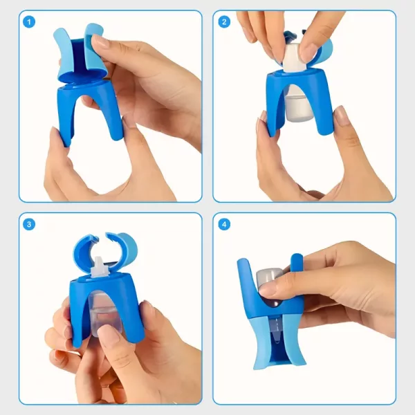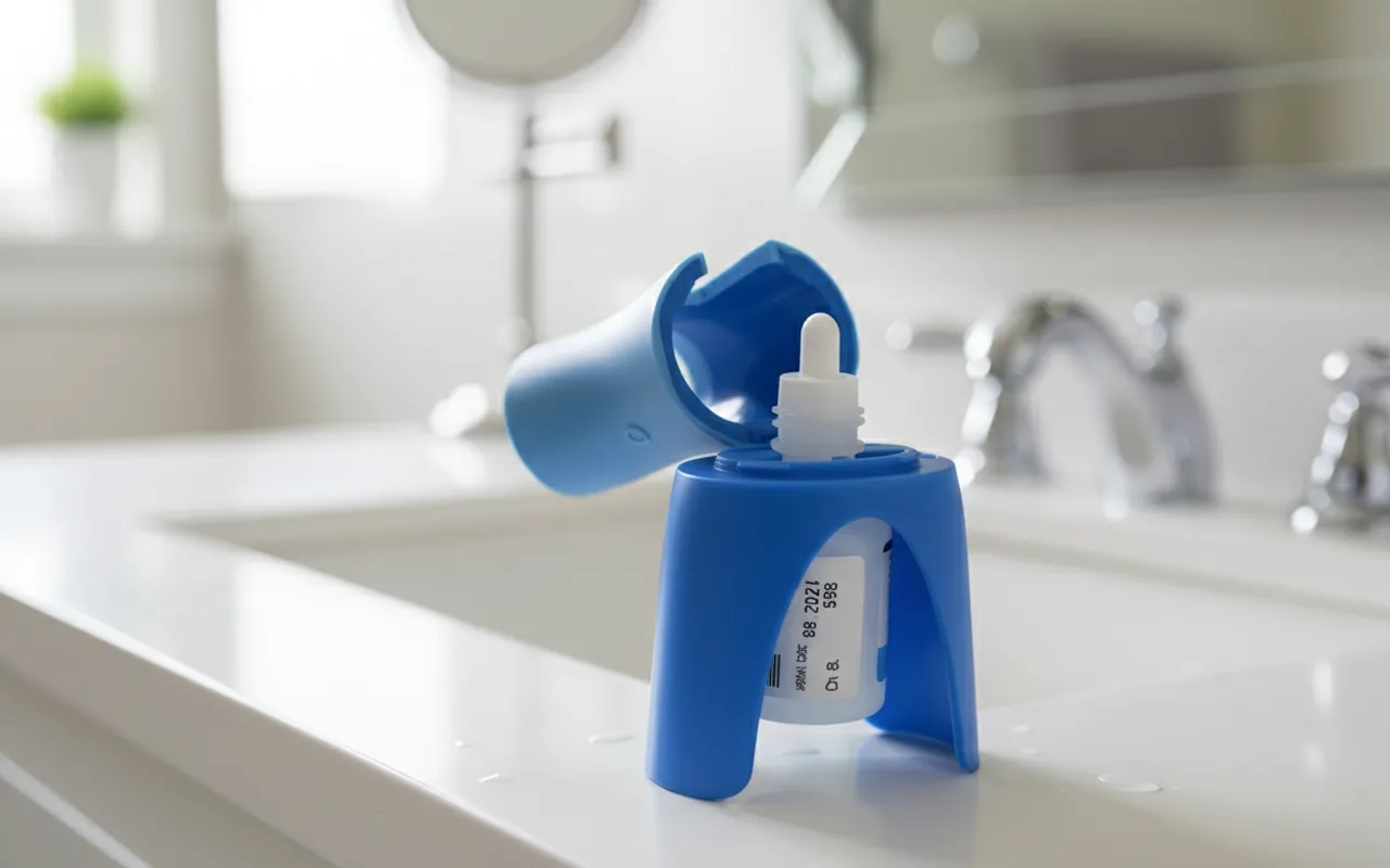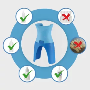 The Ortorex drop dispenser makes eye treatments quick and mess-free. Its smart design helps position the bottle exactly where you need it. No more blinking, struggles, or missed drops.