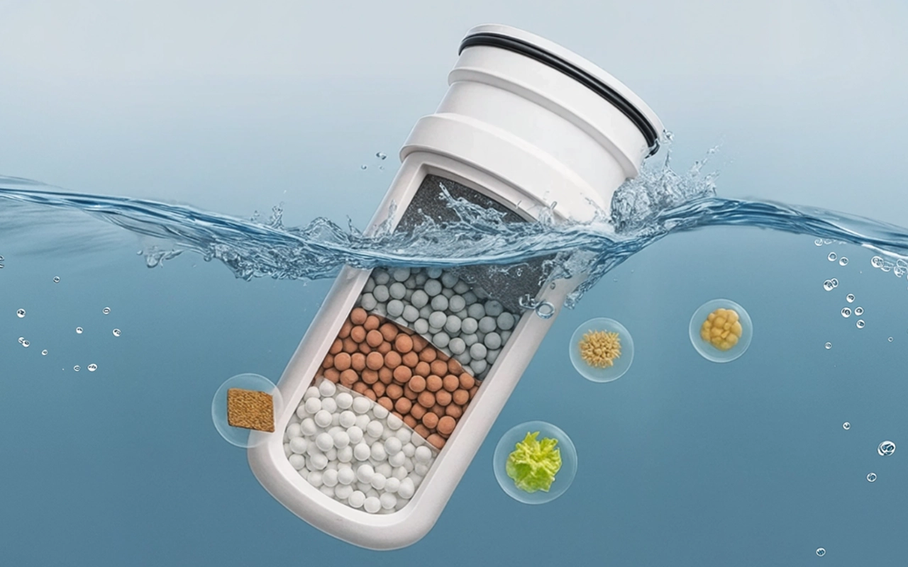 A ceramic element captures rust and sediment at a microscopic level. It ensures only clear liquid flows through for every use.