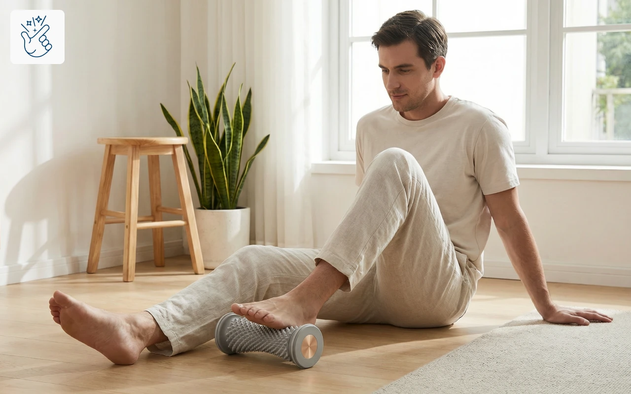 I keep it next to my bed and roll my feet before sleeping. It’s really helped with my morning foot pain. Simple and effective.