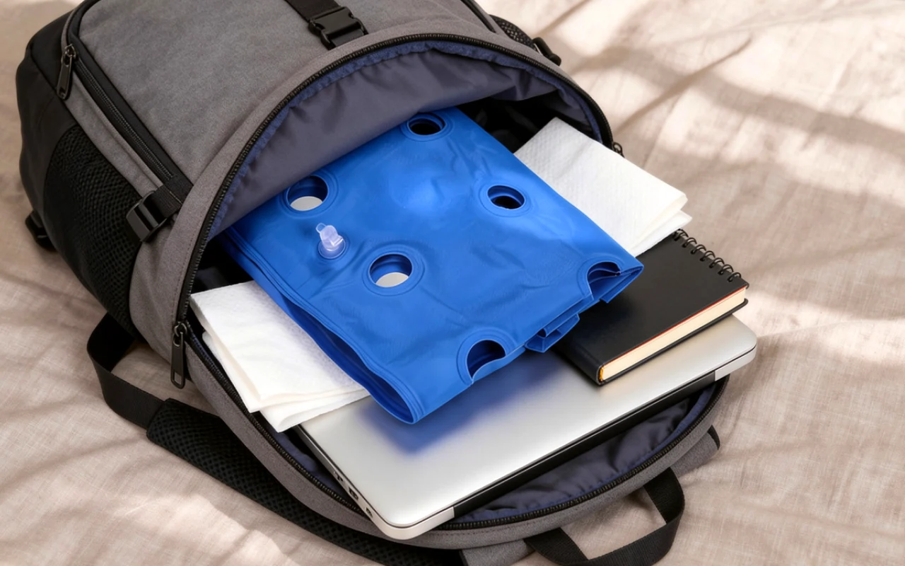 Took it with me on a long flight and felt great the whole time. The cushion stays cool and fits in my bag without taking up space.