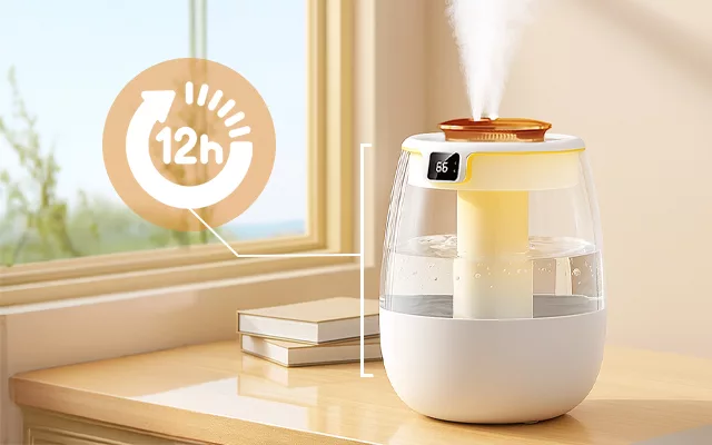 A large tank offers over twelve hours of cool mist. Rooms stay fresh without needing constant refills or checks.