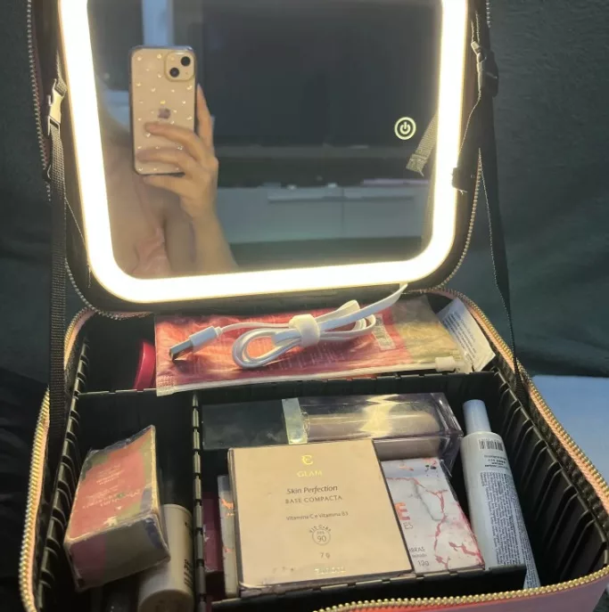 This organizer is amazing! The compartments keep everything neat. The adjustable mirror is super handy for makeup touch-ups. Love the LED light feature.