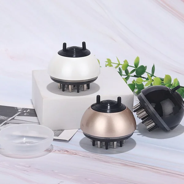 The rolling ball teeth expose the liquid only when you press the comb against your head, preventing waste and mess.
