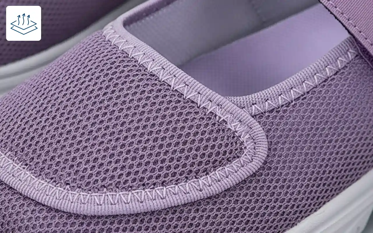 Air-circulating fabric keeps skin cool and dry, reducing irritation. The structure maintains stability while staying soft against the foot.