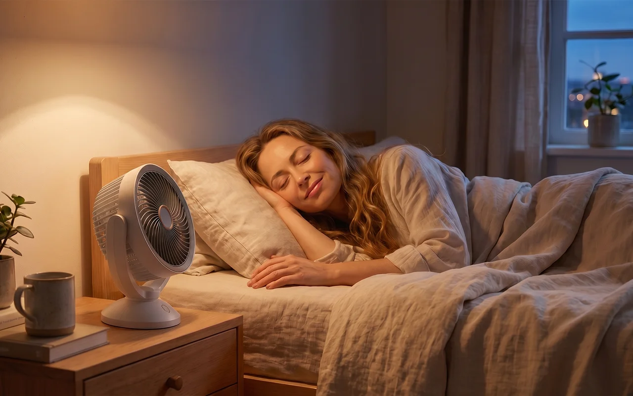 Low sound supports deeper sleep through warm evenings. Gentle airflow reduces stuffiness, helping minds settle faster.