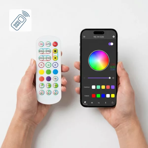 Switch between millions of colours using the simple controls. Set the perfect scene quickly for parties, relaxing, or working.