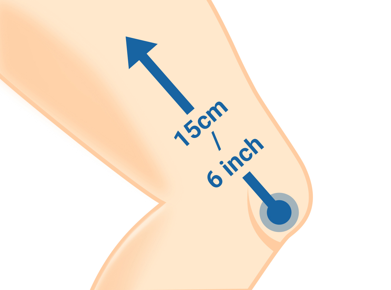 - 2. Start the measuring tape 15cm/6” above the midpoint of your kneecap and extend it down to the ankle.