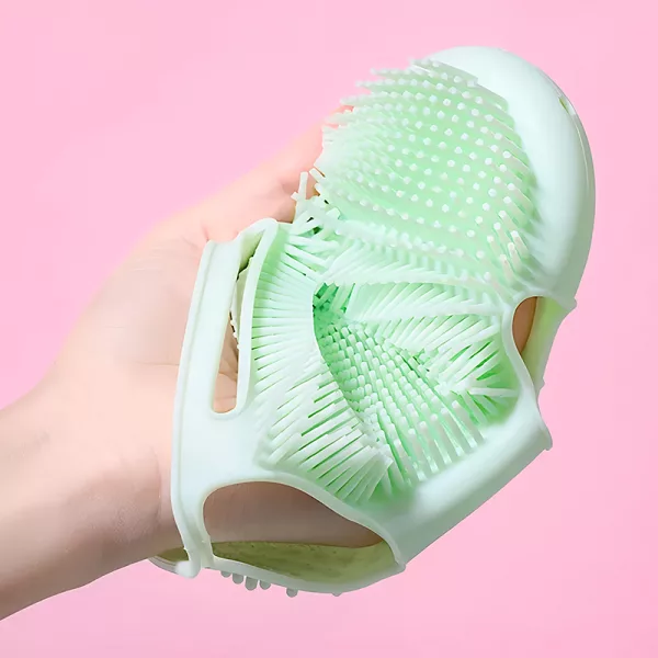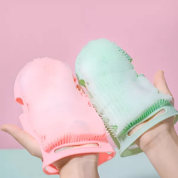 This silicone glove is tough on grime yet super gentle on my arms. I use it every day and my skin feels soft after rinsing.