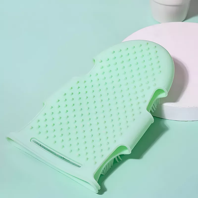 Our silicone glove fits snugly into your hand and stays in place, even in the shower.