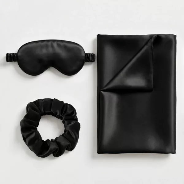 Got the silk set as a treat after night shifts. The cool fabric helps me nap during the day, and the scrunchie leaves no dent in my hair.