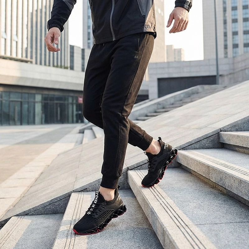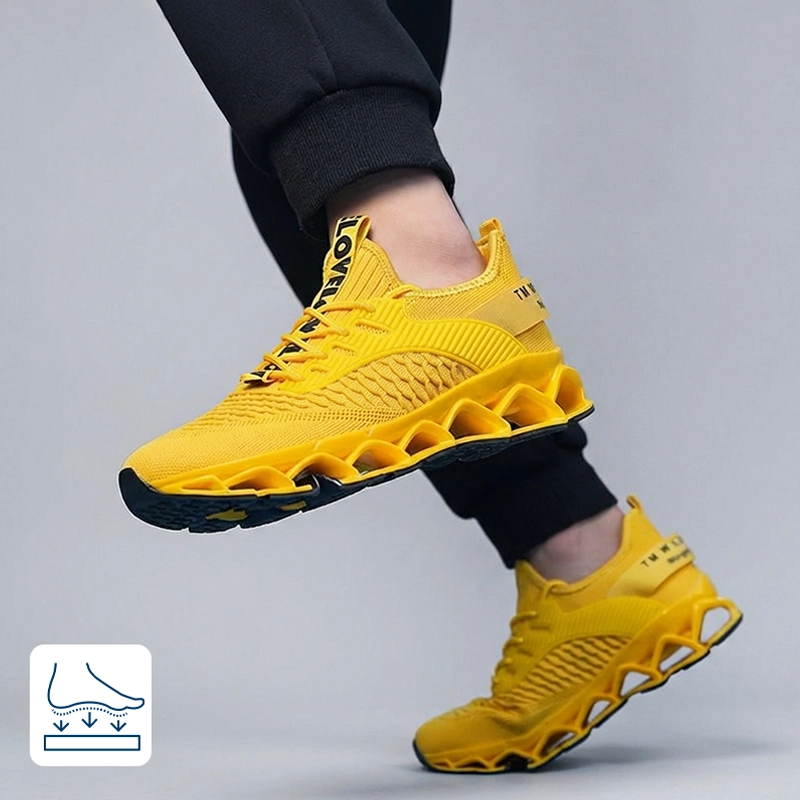 These mesh runners are stylish and practical. The air cushion gives a springy step, and I never get blisters anymore.