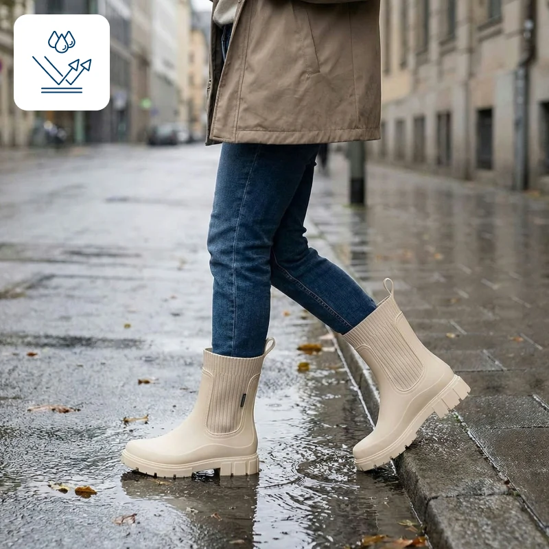 Love how these boots never slip on wet floors. I wore them around town and felt stable the entire day, even on shiny tiles and sidewalks.