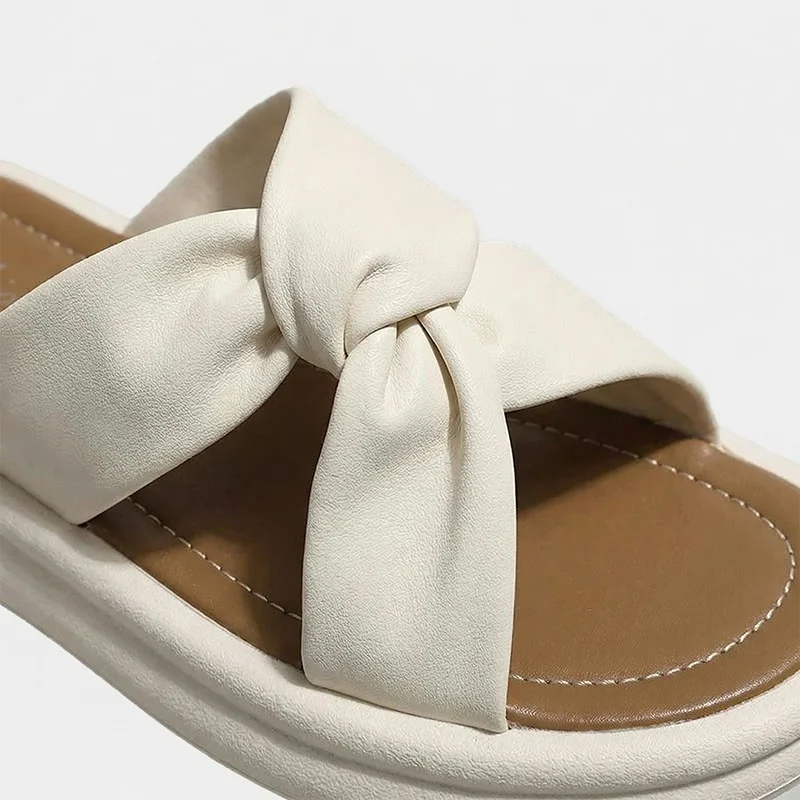 Bought these sandals for weekend errands and beach walks. They slip on fast, cushion my heels nicely, and the cute knot detail makes outfits feel a bit dressier.