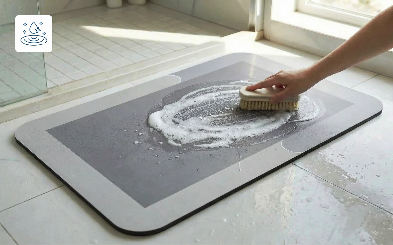 Never seen water disappear so fast. The mat always feels dry when I use it, which is awesome. Cleaning is just a quick wipe—no hassle.