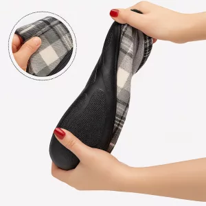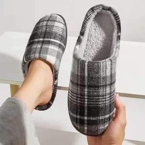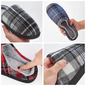 The memory foam molds perfectly around my feet. Love how the cozy plaid looks, and they never fall off while I walk around.