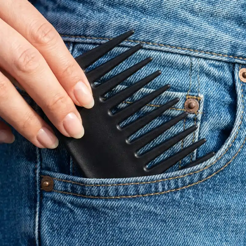 I carry this pocket comb everywhere now. It fits right into my jeans and sorts out knots without any tugging. Super gentle and never snags my curls!