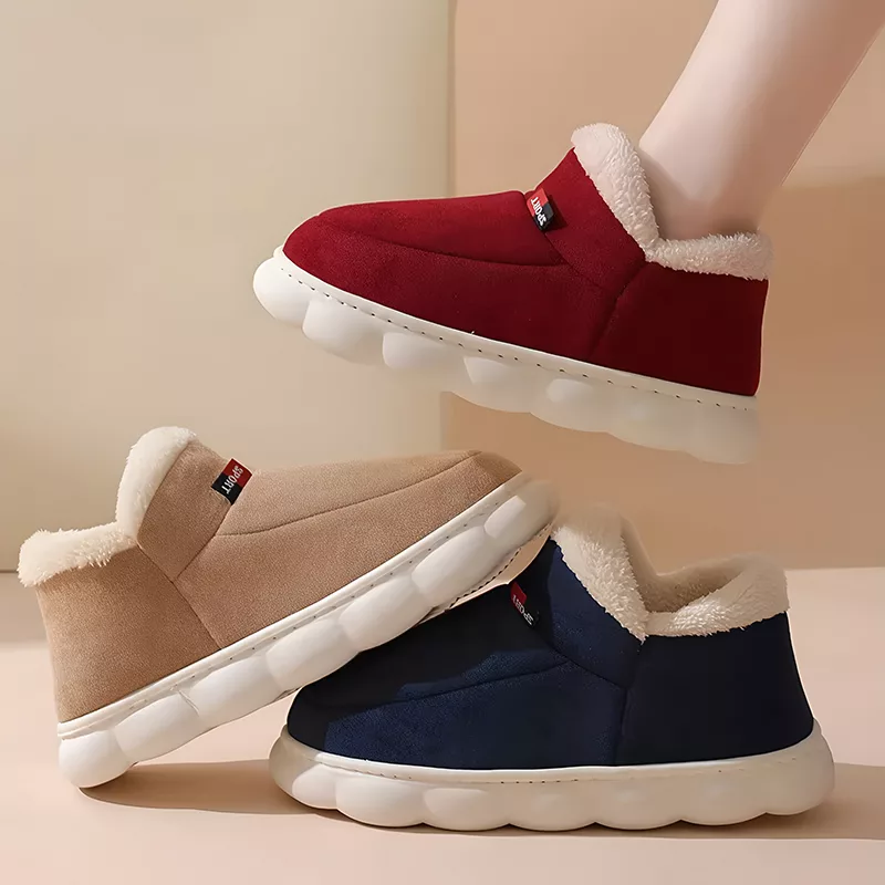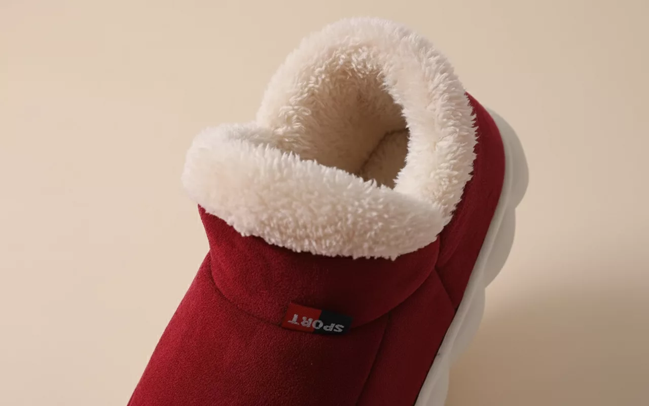 Insulating plush material shields feet from freezing floors. Enjoy relaxing evenings feeling snug and cosy at home.