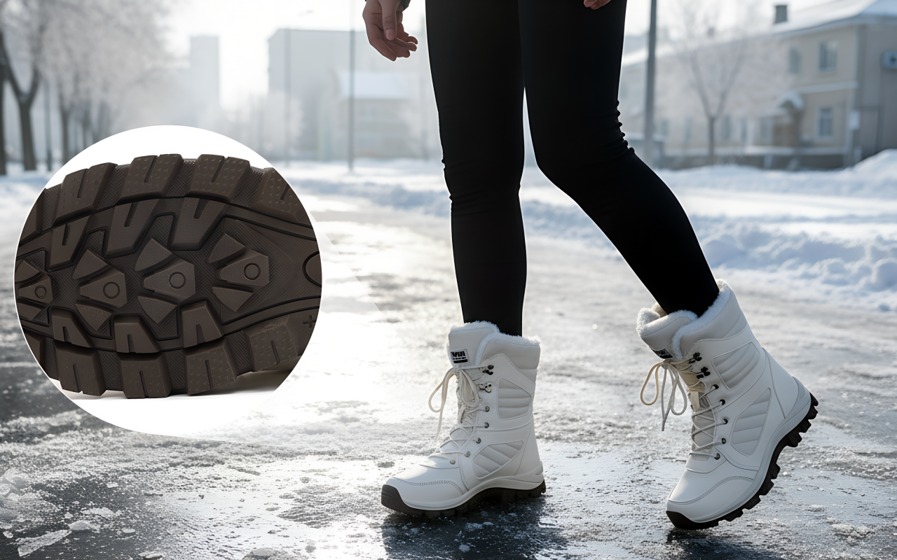 The grip on these boots is amazing. I used to worry about slipping, but now I can walk my dog in the park with no trouble.