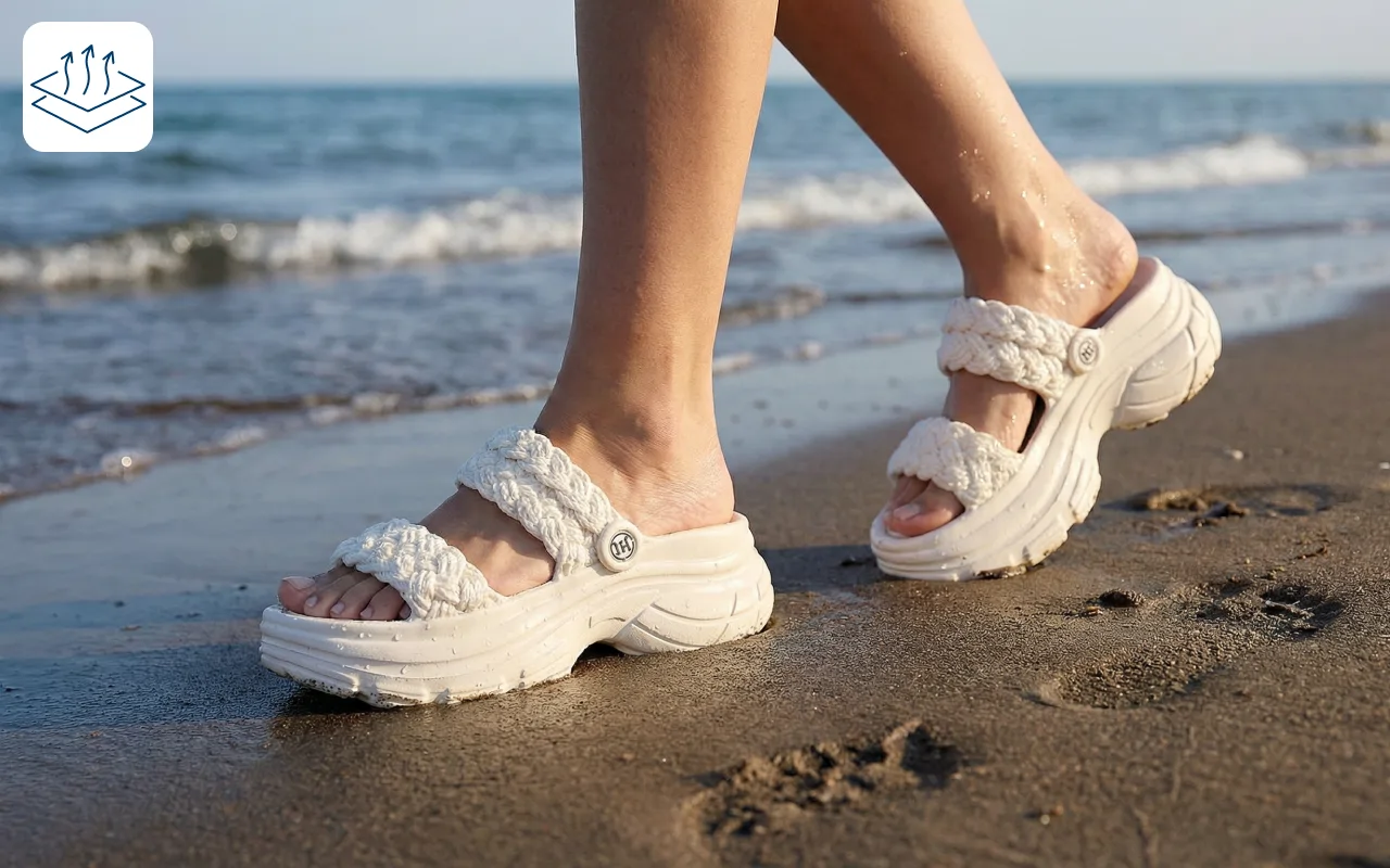 Moisture evaporates fast to keep feet fresh everywhere. Stay comfortable after walks, errands or time by the pool.