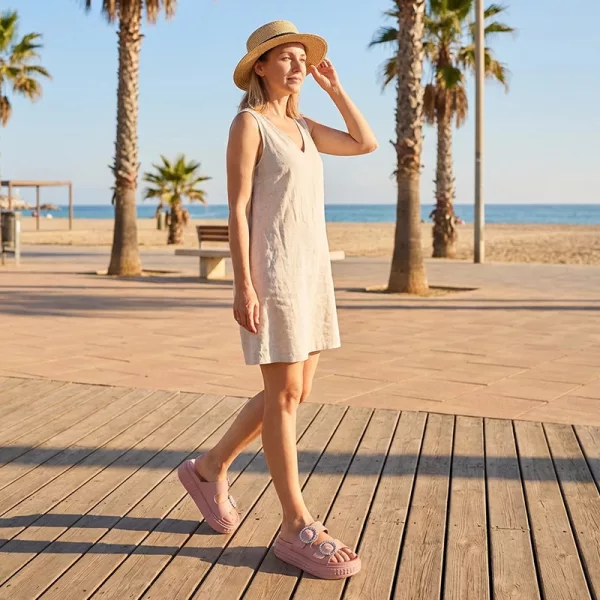 Slip easily into total relief every warm day outside. Each pair keeps feet happy from morning walks until evening fun. No more tired arches or pinching around your toes. Enjoy holiday travels, shopping trips, and garden strolls without aches.