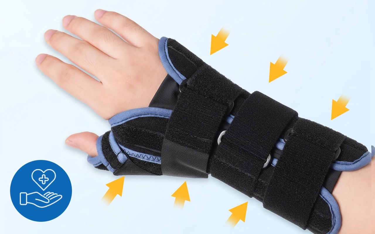 Three straps offer a secure fit for any wrist size. Thumb support adjusts easily without limiting daily movement.